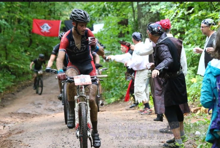 After this, Emily headed out the door for deployment a few months later and I was prepping for Chequamegon Fat Tire. In terms of intensity, this race is more like a crit compared to an endurance event like Lutsen. At only 42 miles or something like that, this race featured lots of gravel and sandy trails. The drive up there to Hayward saw lots of rain and a torrential downpour an hour before the race. The race course contained giant puddles every mile or mile and a half. Some were as deep as the bottom bracket. This race I had a couple instances of my chain jamming (I know, I should convert to 1X, lol), so I had to stop and fix that, the first of which happened a couple miles into the race on the first fairly large climb. LOTS and LOTS of racers went by as I was clearly on the struggle bus with that. Anyway, all disgruntled feelings went aside as we approached and climbed Pirate Hill. Pic below shows the rum shot going down very well. First time at Cheq and first time having a shot of rum on a bike ride. Have to say I was impressed. It went down smooth and did give me a little kick to the finish. In fact it was delicious!!! The pirate signs reading "Surrender the Booty" gave an added morale boost too. Finished that race around 2 hours 40 mins or something like that. Not the best showing, but very fun race. Intense and fast! Pictures below of from Pirate Hill. Goal is to make a return to northern WI for this event! Not for the rum though, duh ;)